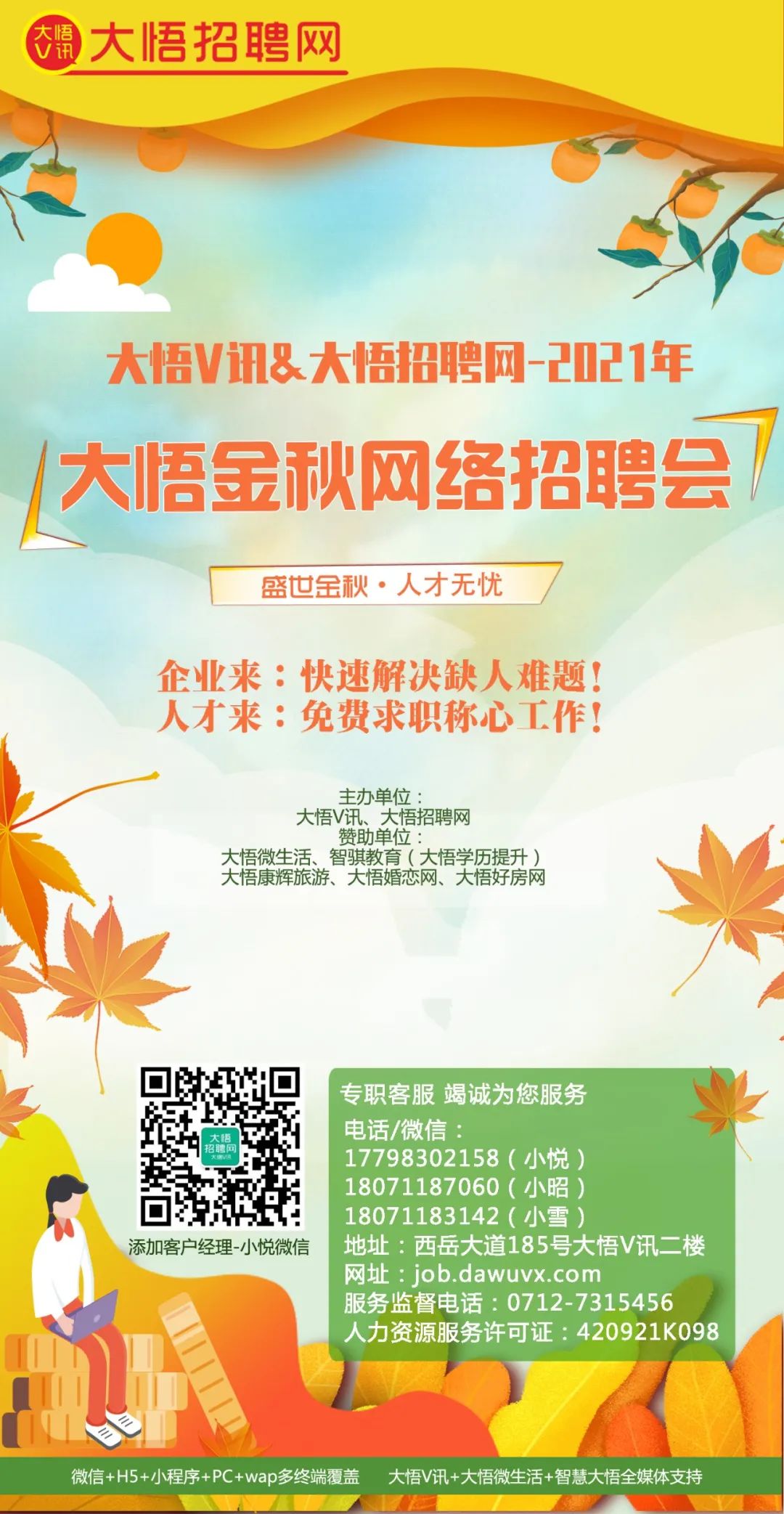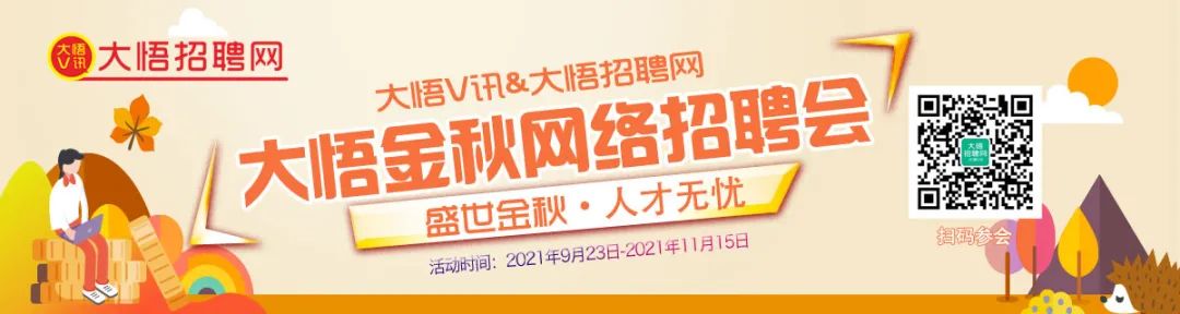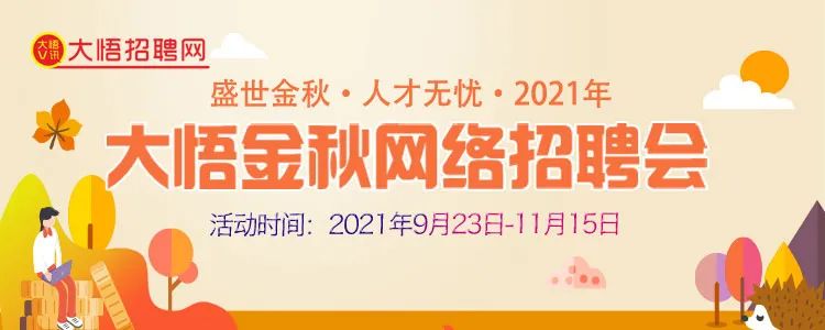 2021年“盛世金秋·人才无忧”大悟招聘网(大悟V讯)金秋网络招聘会盛大开启!